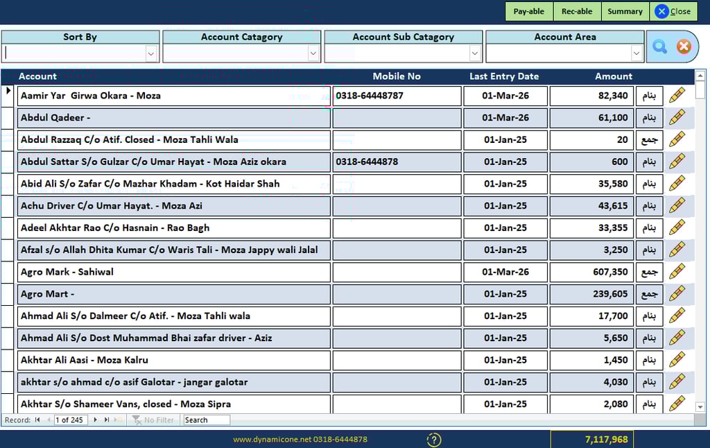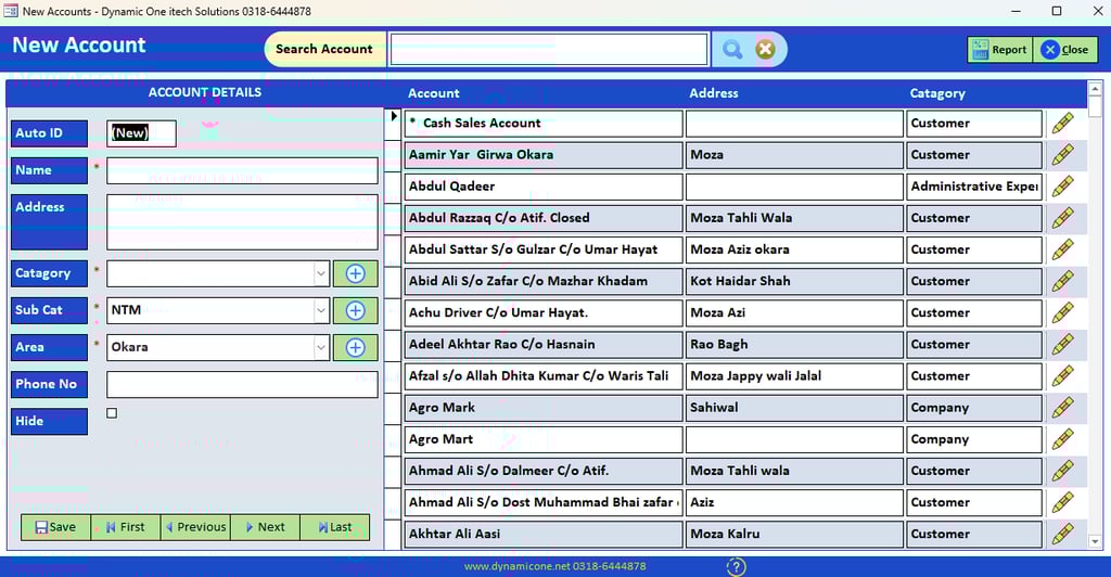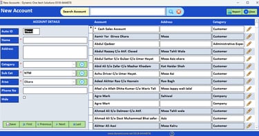 Manage accounts area wise / Category wise